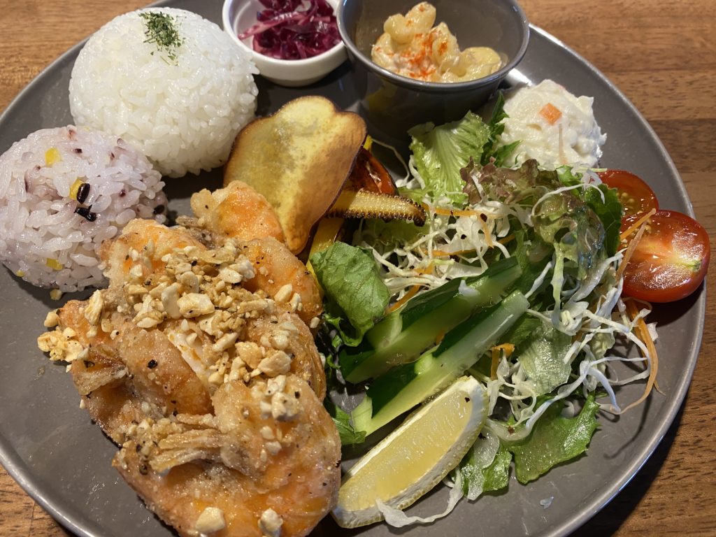 私は、ガーリックシュリンププレート。エビは殻まで食べることができます。めっちゃ美味しかったです。