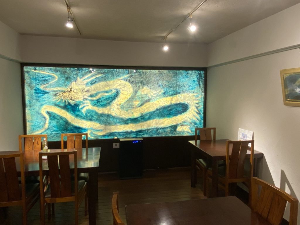 ギャラリー内は撮影禁止でしたが、一階のカフェにも片岡鶴太郎さんの作品が飾られています。