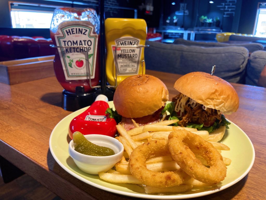 看板メニューを注文です。相方はワンハンドバーガープレート